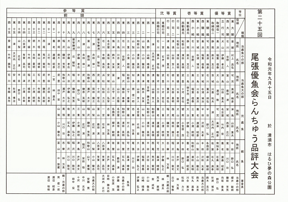 ▼ 尾張優魚会 第25回 品評会(9月15日)