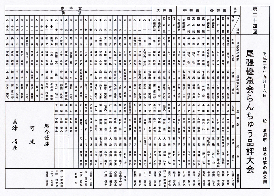 ▼ 第24回 尾張優魚会 品評会(2018年9月16日)