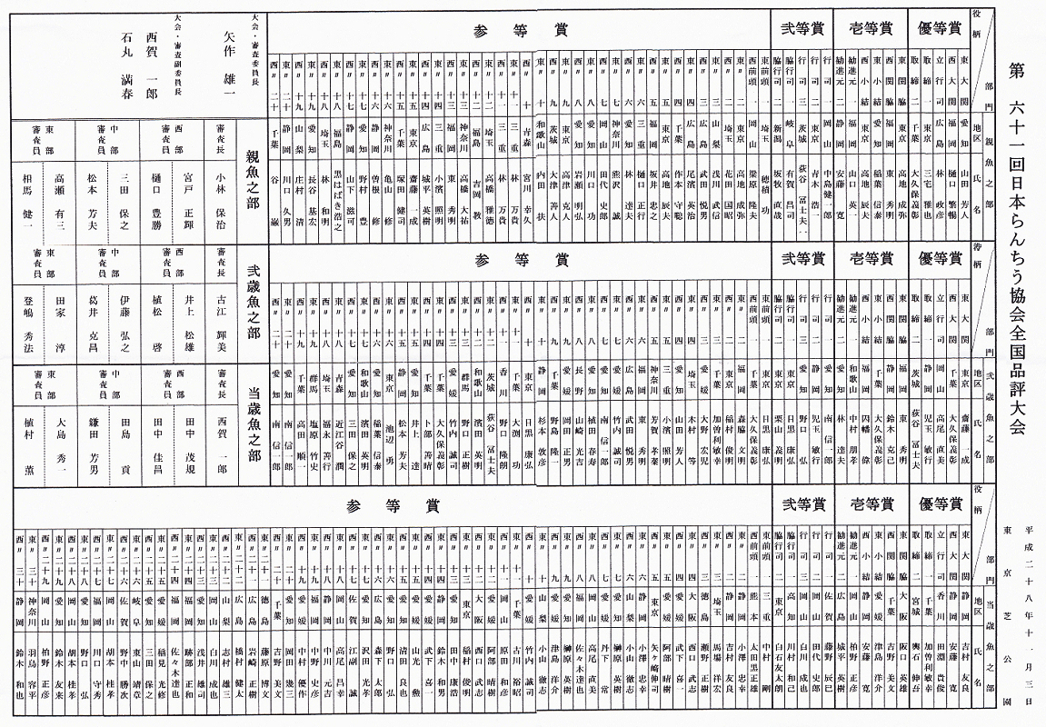 ▼ 第六十一回 日本らんちう協会 全国品評大会(2016年11月3日)