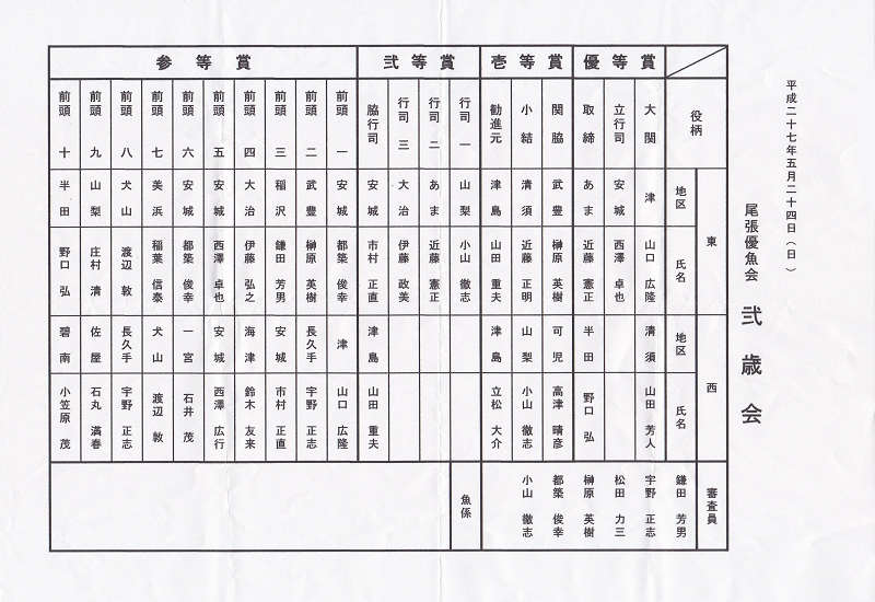 ▼ 平成27年 尾張優魚会 二歳会(2015年5月24日)