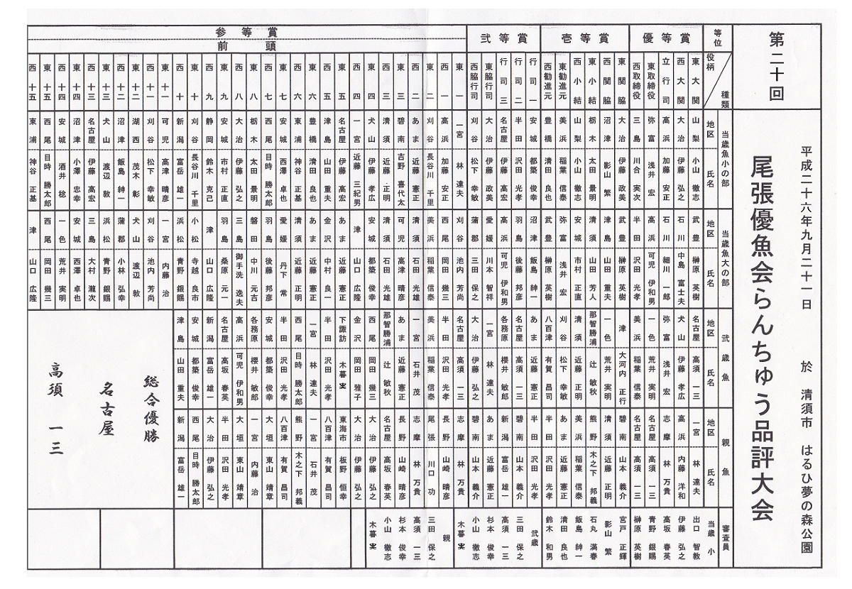 ▼ 尾張優魚会 第20回記念品評大会(2014年9月21日)